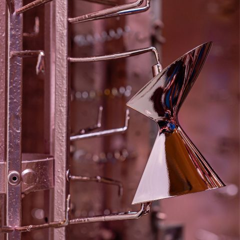 Il processo PVD (physical Vapor Deposition) permette ad oggetti di natura diversa di trasformare la propria estetica assumendo una finitura uguale al metallo evaporato. Un processo veloce ed ecologico che consente la sublimazione di metalli su materiali di varie forme favorendo una copertura ed una finitura uniforme e precisa.