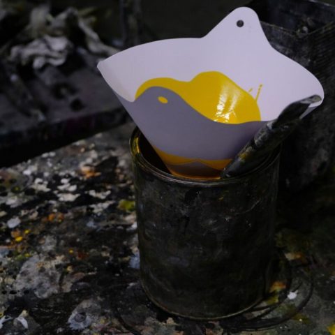Dopo aver asciugato la vernice di fondo, il BIDONE esce fragrante dal forno.
