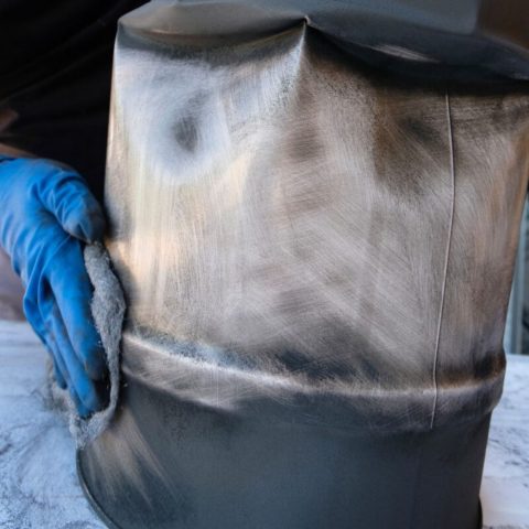 Per tutti i Bidoni in finitura vintage viene applicata un’ulteriore vernice chiamata “bronzante”.