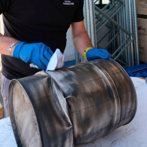 I fusti esauriti, una volta terminata la loro vita da imballaggi metallici, vengono sottoposti a uno scrupoloso processo di pulizia: si devono far belli per diventare oggetti di design.